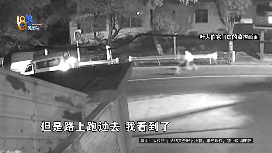 叶大伯:车里下来我没看到,但是路上跑过去,我看到了。他“咚咚咚咚”往那边跑了。