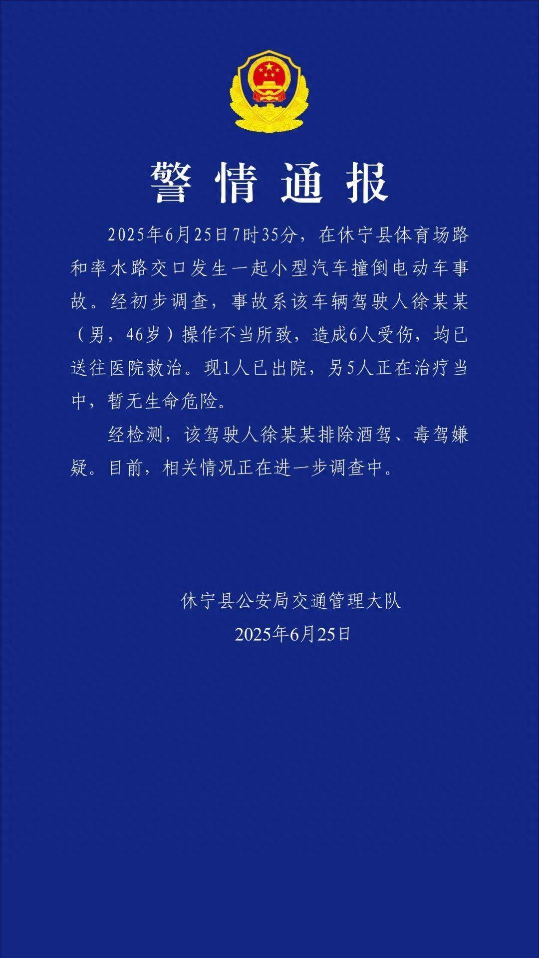 盈盈有道配资 安徽休宁警方通报一起小汽车撞倒电动车事故:驾驶人徐某某(男,46岁)操作不当所致,造成6人受伤 盈盈有道配资 来源:股票配资选股 网站:亿财配资 日期:2025-06-26 13:04:21 查看:108